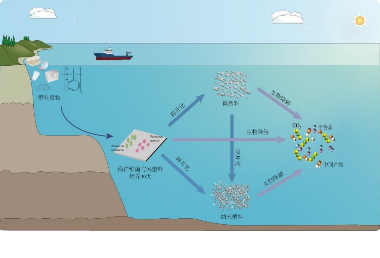 图 1深海细菌生物降解作用介导的塑料碎片化与微纳塑料形成过程(简述图)